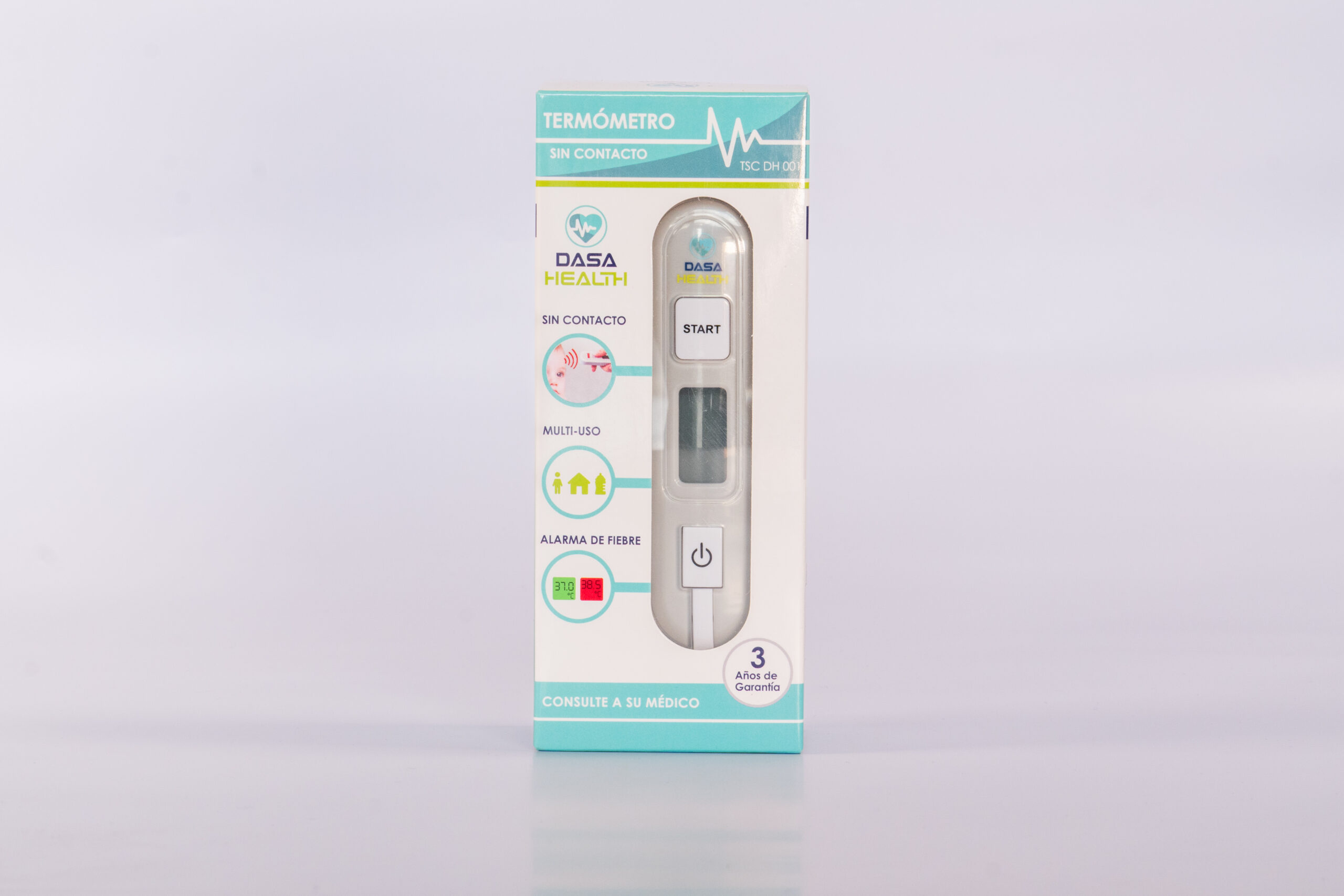 Termometro de viaje, sin contacto, infrarrojo, dasa health, proporciona resultados en 3 segundos, es pequeño y ergonomico lo que permite llevarlo a todas partes