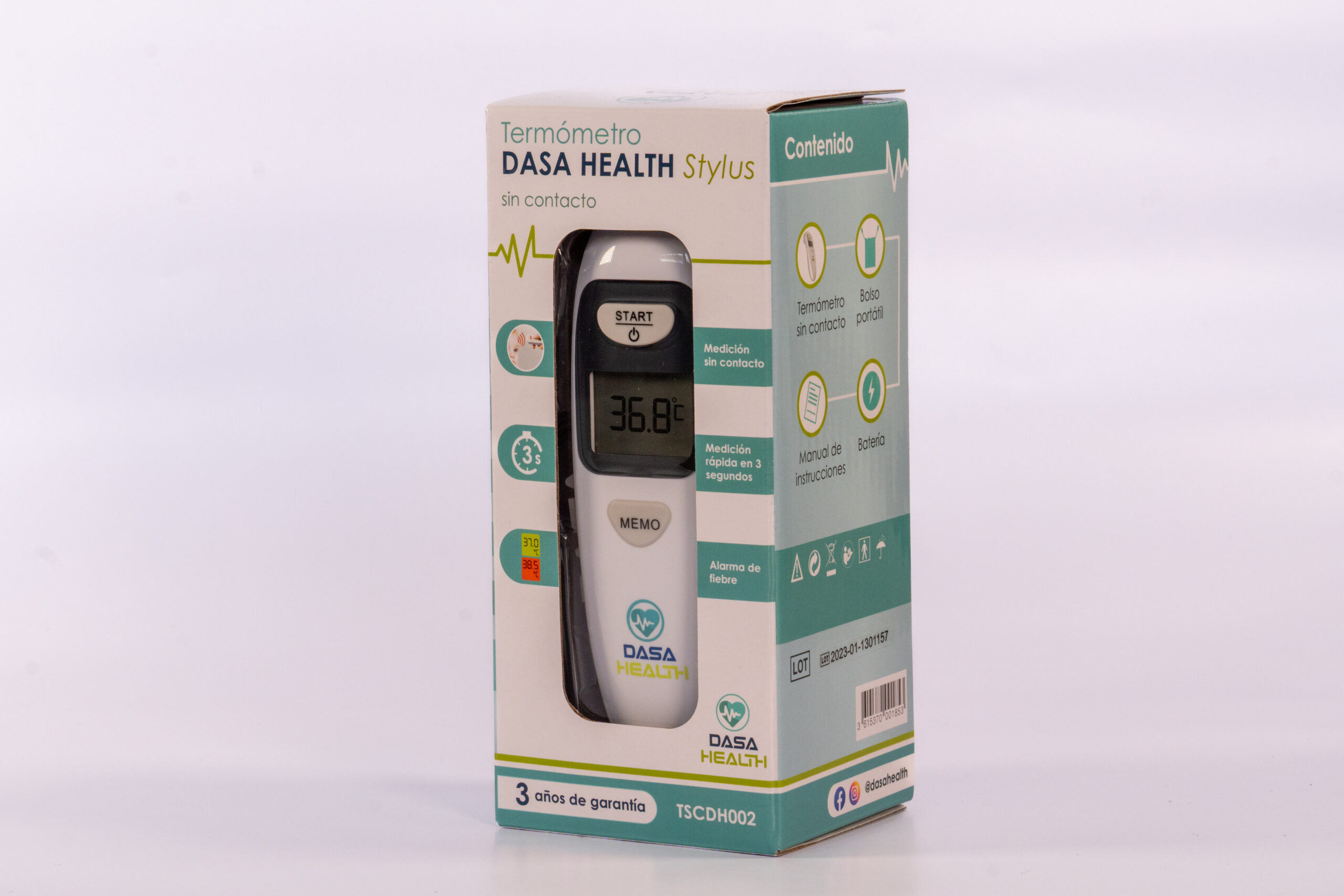 Termometro sin contacto, infrarrojo, stylus dasa health, con luz de seguimiento, proporciona resultados en 3 segundos